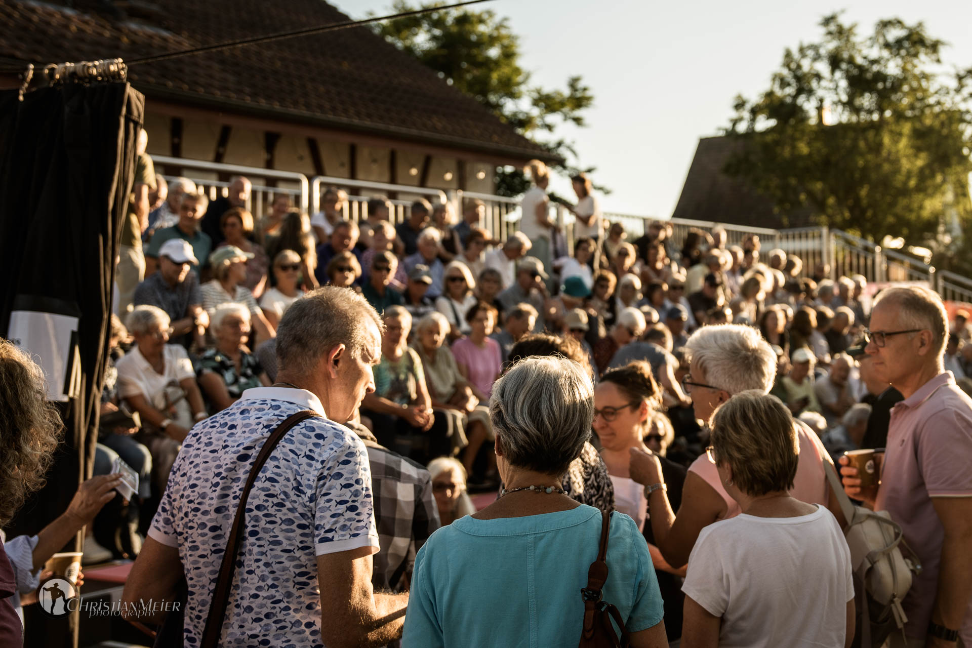 Das Wetter spielte mit und sorgte zusammen mit der charmanten Kulisse des Schleiniker Dorfkerns für echte OpenAir-Vibes. Bereits ab 18:30 Uhr lud die Milchhütte Schleinikon mit feinen Speisen und kühlen Getränken zum Verweilen ein und stimmte auf einen besonderen Abend ein. Die Atmosphäre war entspannt, die Vorfreude spürbar und die Begeisterung nach der Vorstellung gross.